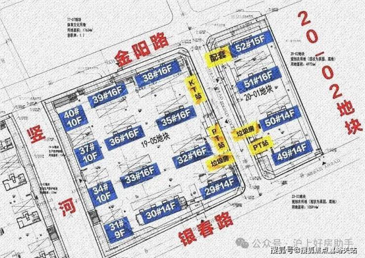 19-05地块:拟建7栋16F高层住所、3栋9F高层住所、1栋14F高层住所、1栋10F高层住所以及若干配套用房.